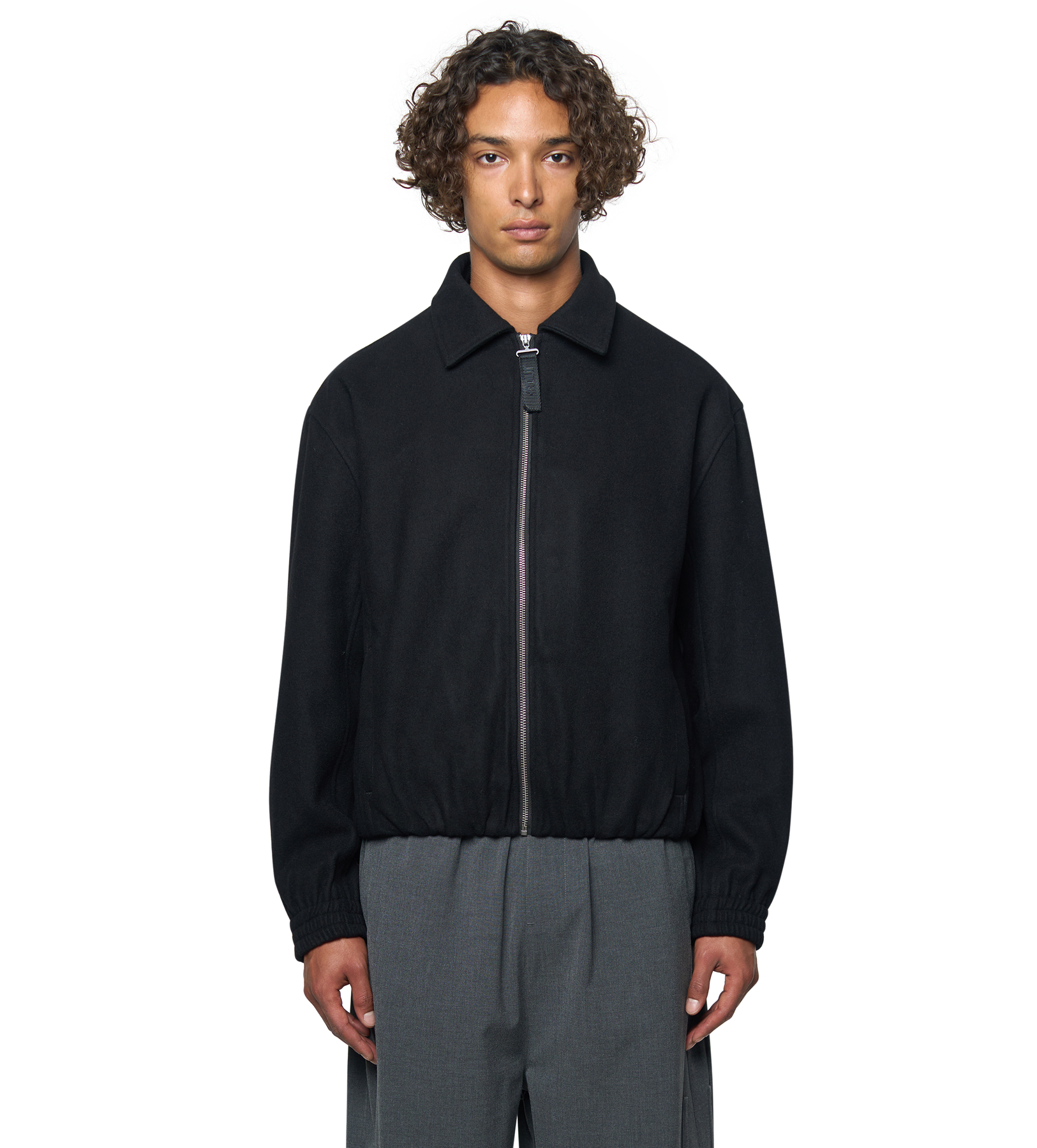 The Logo Wool Square Jacket in black combines streetwear aesthetics with functional comfort. Cut in a regular fit, it’s crafted from a nylon-spandex shell for a structured yet flexible feel, with a polyester lining and lightweight polyester padding for added warmth.