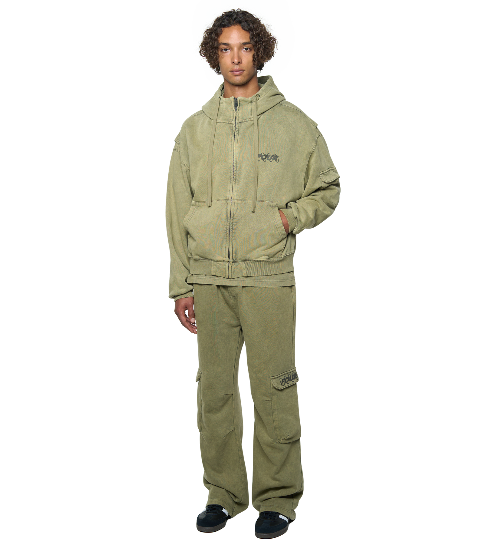 FOUR Circles Boxy Zip Up Hoodie Washed Moss Green