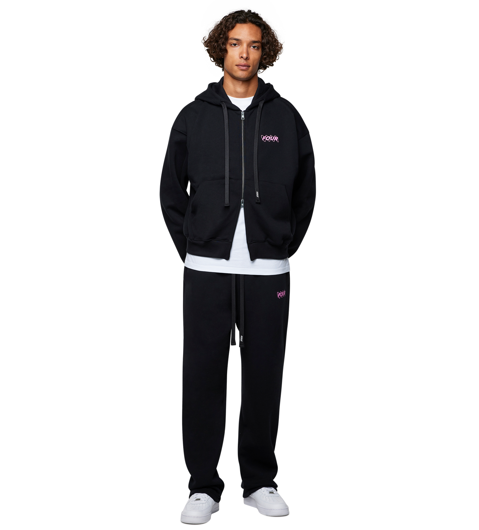 Designed for clean silhouettes and comfort, the FOUR Circles Straight-Leg Pants in black with pink details are cut from durable cotton-blend fabric with a tailored-meets-relaxed fit. Featuring Circles embroidery on the thigh, these pants offer a minimalist take on everyday styling.