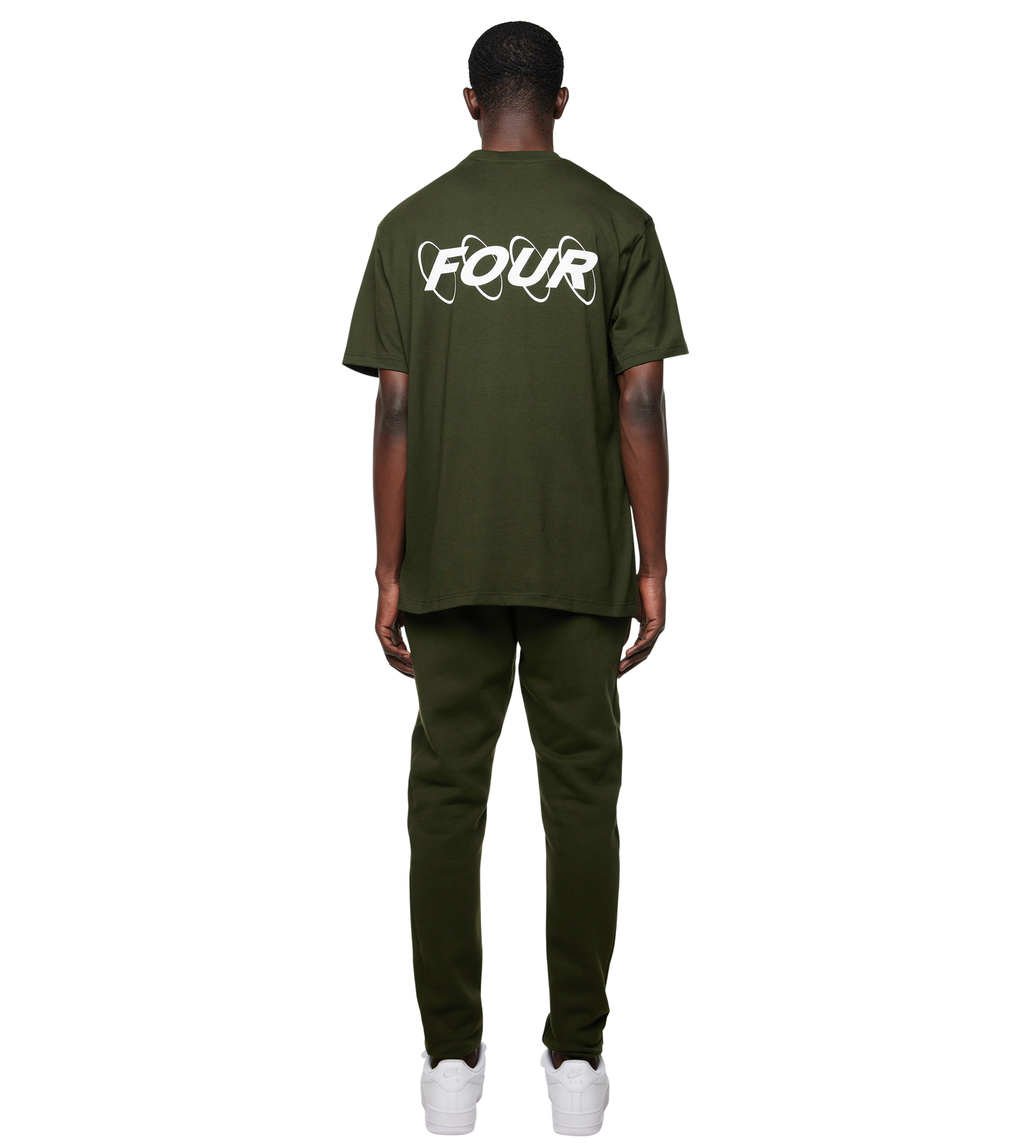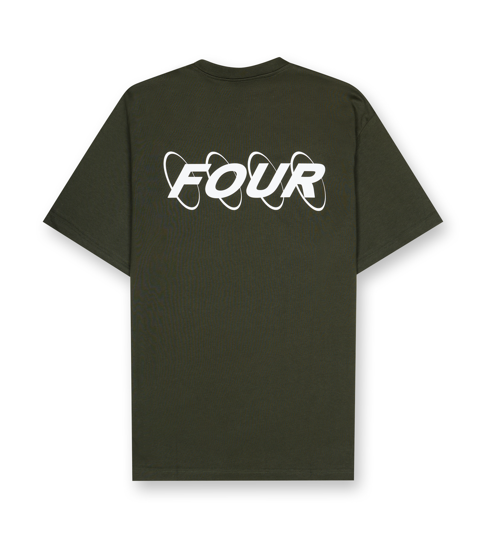 An elevated take on a wardrobe essential, this oversized T-shirt is crafted from smooth 180 GSM single jersey in a rich army green tone. The relaxed silhouette offers an effortless drape, while the signature circles logo on the front introduces a subtle point of recognition. On the back, the iconic enlarged circles logo defines the piece, bringing a refined yet impactful expression that has become a staple within FOUR’s visual language.